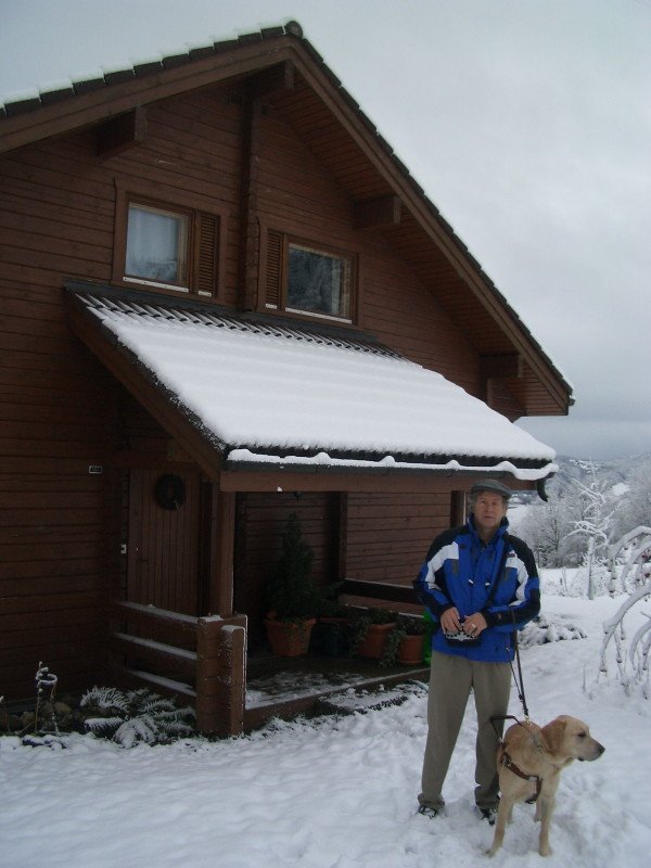 So, off we went, following a pedestrian route on narrow mountain roads, slushy with new snow. As the fog lifted, Charles commented on the incredible views over the valley and to Lake Neu Chatelle far below.